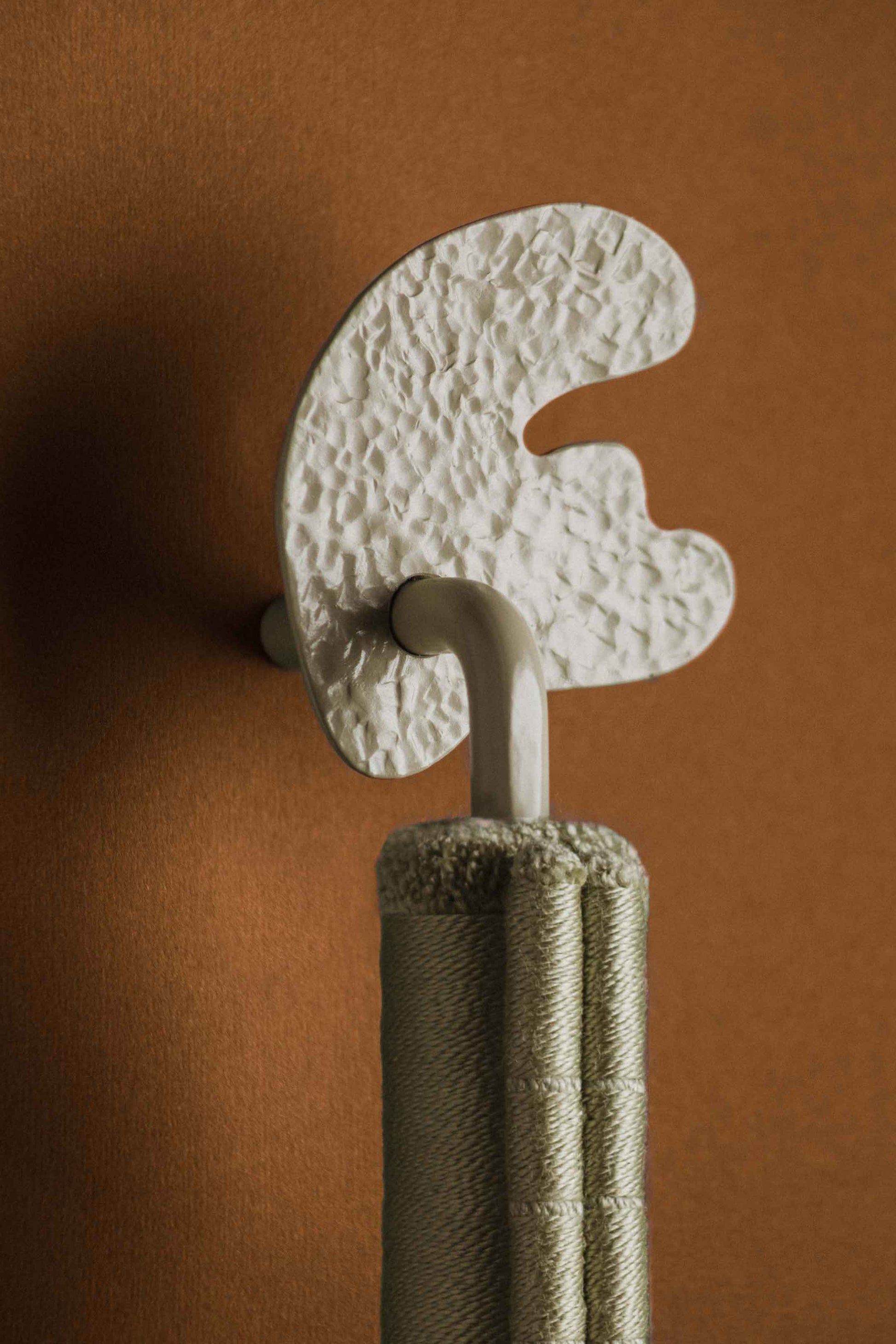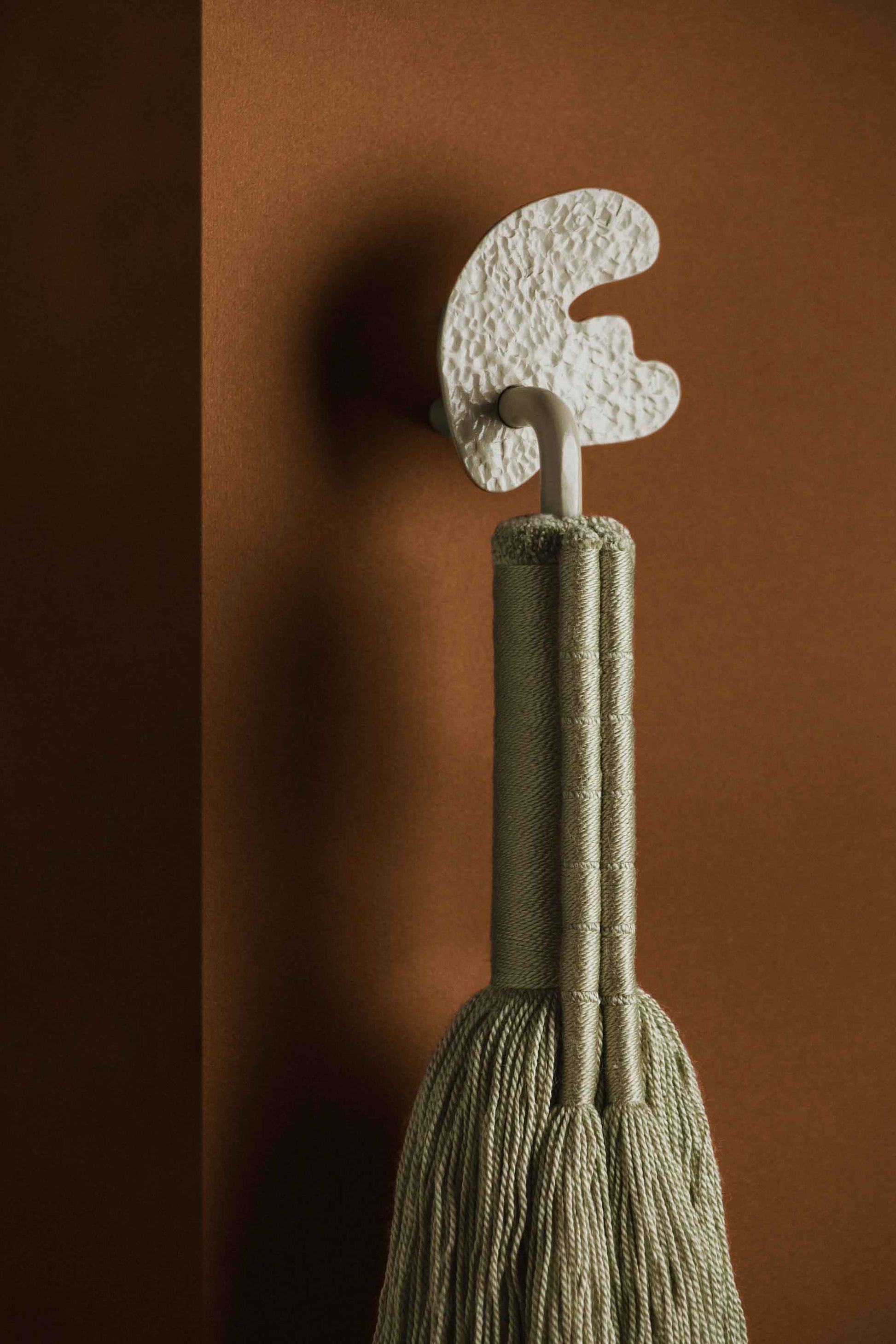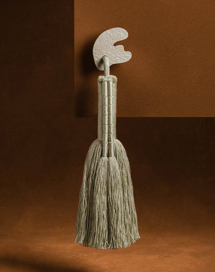 Tirador realizado en hierro esmaltados al horno combinado con hilos de acrílico ultra delgados.
