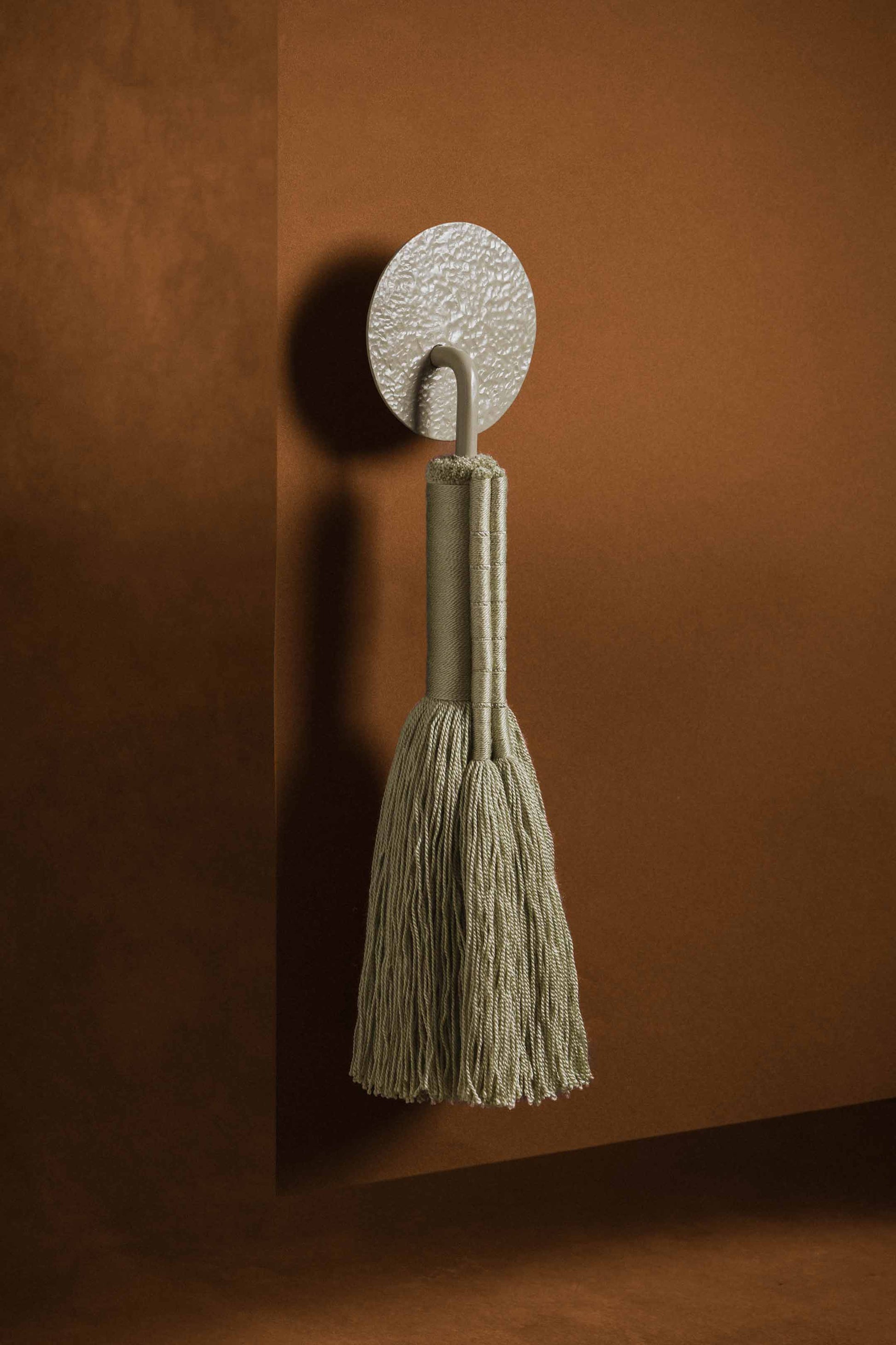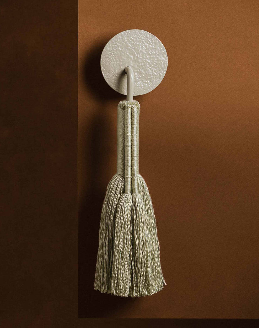 Tirador realizado en hierro esmaltados al horno combinado con hilos de acrílico ultra delgados.