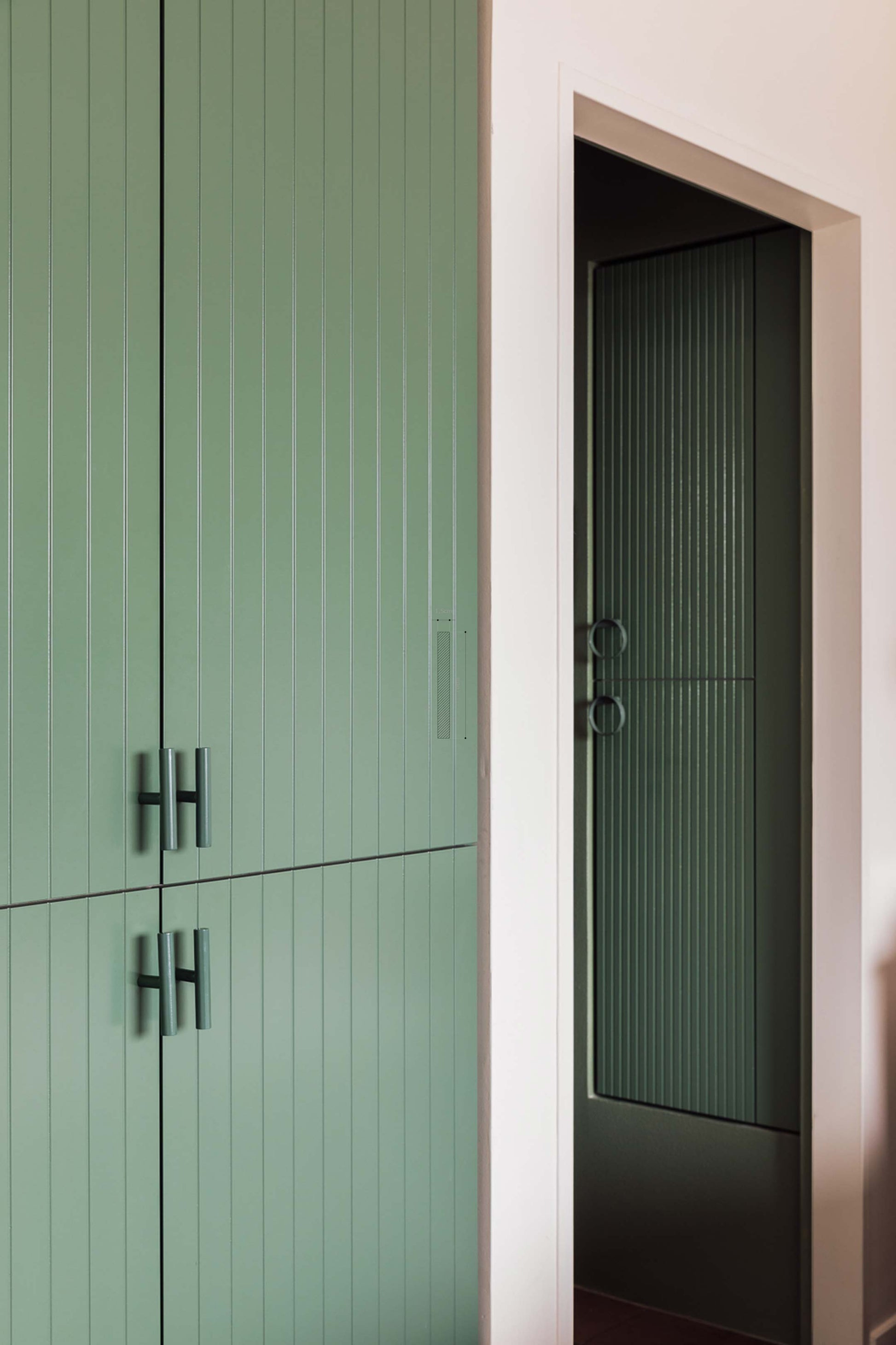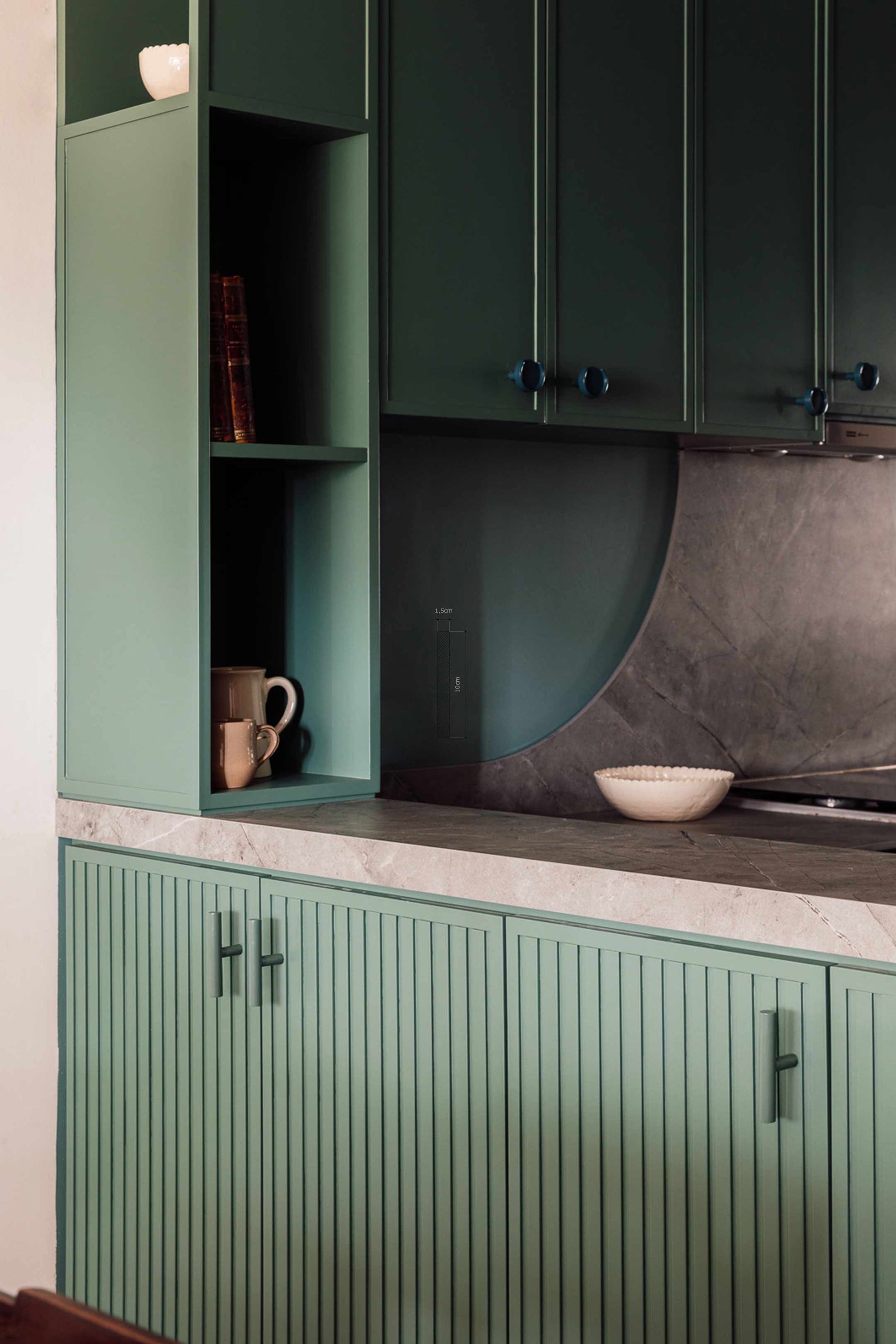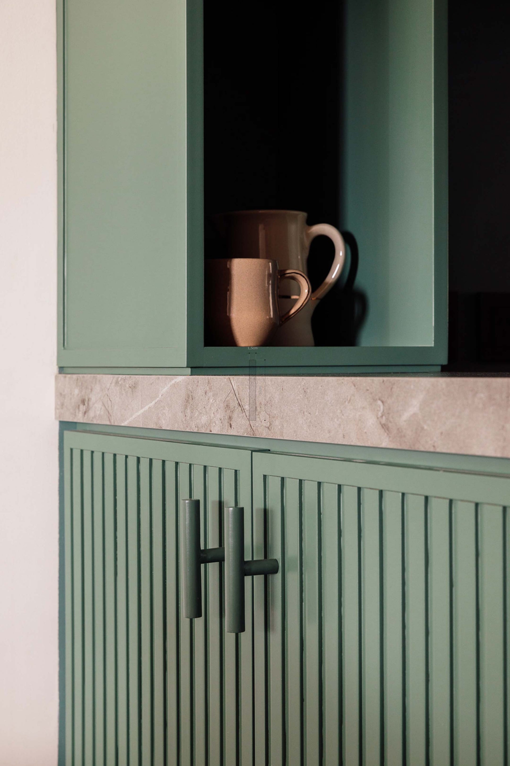 Tirador de líneas simples, que funciona tanto en puertas como cajones, para usarlos solos o combinados con otro modelo. En las imágenes pueden verlo combinado con el Corona dando movimiento e interés al mobiliario.